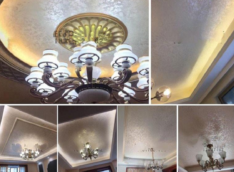 具有無(wú)毒無(wú)味、綠色環(huán)保、涂膜附著力強(qiáng)、阻燃耐擦洗、耐酸、不褪色等優(yōu)良性能。與普通墻面涂料和壁紙相比,具有無(wú)縫銜接、不起皮、不開(kāi)裂等優(yōu)點(diǎn)在吊頂上進(jìn)行裝修,別具一格。只要有光照耀的地方,就會(huì)散發(fā)出獨(dú)有的氣質(zhì)。清晰的金色花紋在光的照射下,帶著幾分明亮,生動(dòng)華麗。