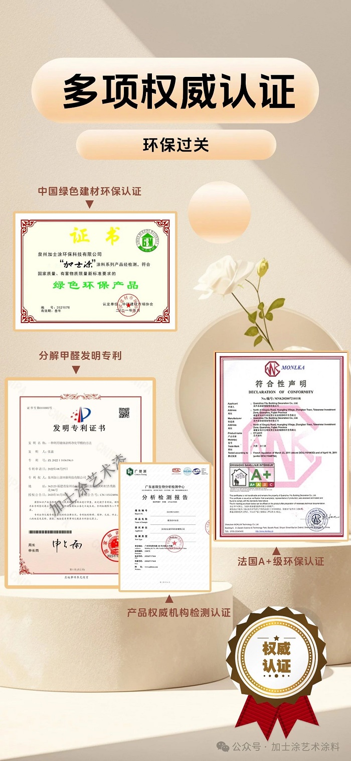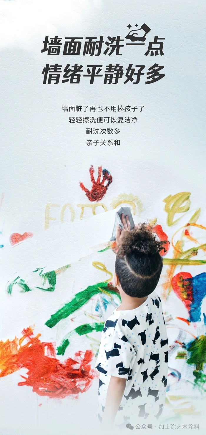 凈醛蛋殼光:加士涂凈醛蛋殼光以其卓越的性能脫穎而出。它不僅具備超高硬度,刮擦不留痕,一流的耐擦洗性能,還添加了分解甲醛配方,實現(xiàn) 0 甲醛,超越國家環(huán)保標準,創(chuàng)造更環(huán)保健康居家環(huán)境。這使得它更加耐造,壽命也更為長久。