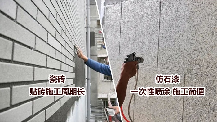 瓷磚等產(chǎn)品施工繁瑣,周期漫長(zhǎng)。但加士涂仿石漆不同,施工簡(jiǎn)便快捷,紋理和花點(diǎn)一槍就能成型。后期成品修補(bǔ)也容易,可大幅縮短施工周期,節(jié)省時(shí)間和人力成本,是外墻裝飾的理想之選。