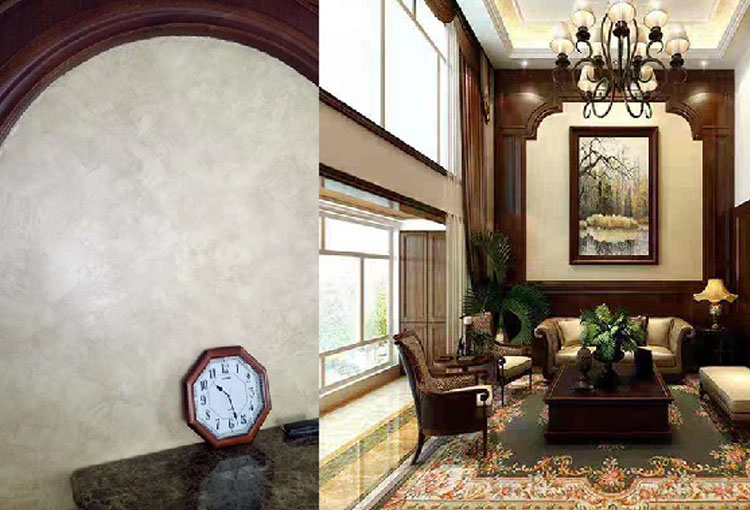 閃光石批刮紋理效果獨(dú)具藝術(shù)感,質(zhì)地平滑如石材,手感光滑舒適,給人一種一種光亮、大方、典雅的感覺,能提升家居裝修的檔次。